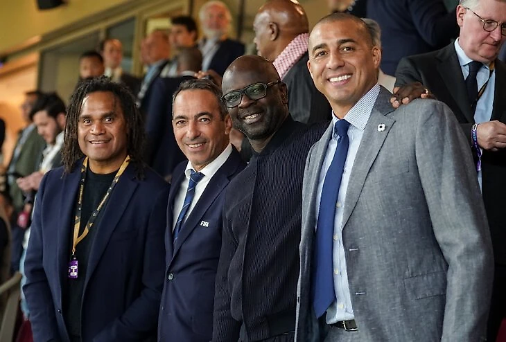 В очень солидной компании. Рядом с Лилианом Юри Джоркаефф, Кристиан Карамбе и Давид Трезеге, другие чемпионы мира-1998. Весь матч они общаются друг с другом, а после – с президентом Макроном и президентом Инфантино.