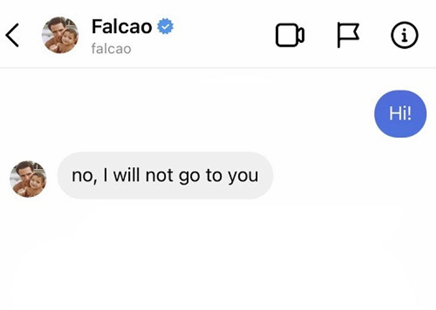 Пресс-служба «Ростова» ответила красно-белым коллегам цитатой главного тренера ростовчан Валерия Карпина, приложив скриншот «переписки» с нападающим «Галатасарая» Радамелем Фалькао: «Всё-таки не поедет».
