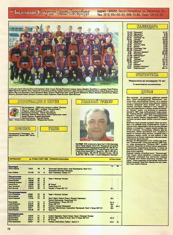 10 июля 1995 года состоялось дерби с сине-бело-голубыми. У главной питерской команды начало сезона было неплохим, но затем клуб опустился в низ турнирной таблицы, попав в мощную функциональную яму. Впрочем, к моменту игры с "Сатурном" парни Садырина уже готовы были на новые подвиги. Начало разгрому положил на 40 минуте с пенальти Кулик, во втором тайме Дмитриев шикарным ударом метров с 20 и Зазулин с углового головой укрепили преимущество.