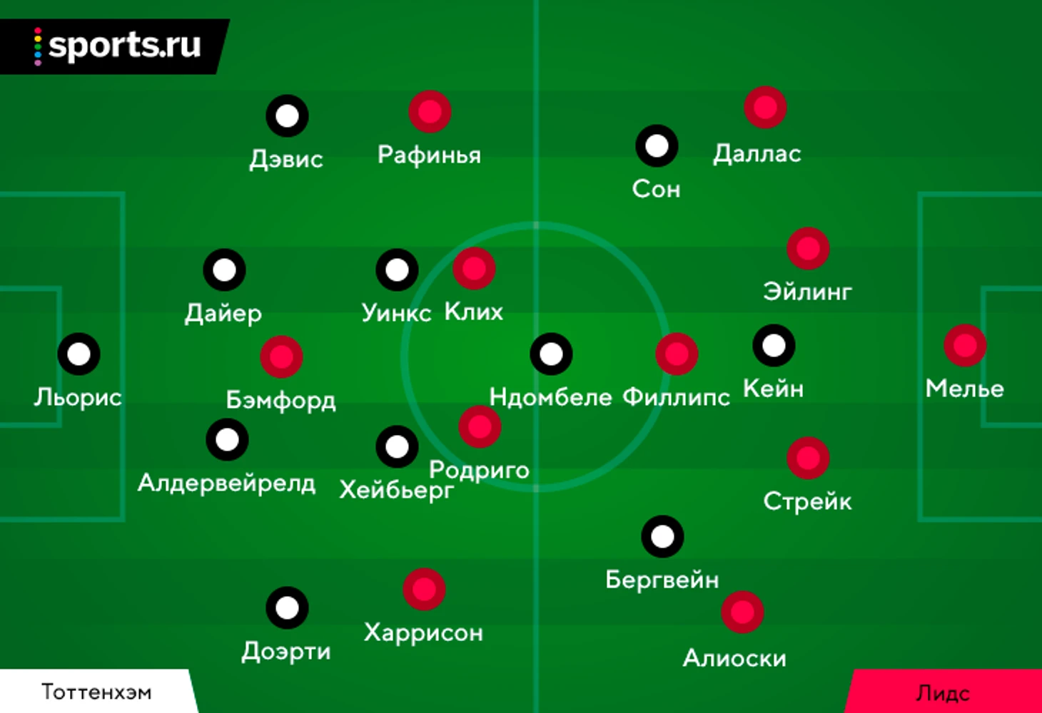 В первые минуты «Лидс» выглядел гораздо лучше: владение не было стерильным, создавались голевые моменты, а «Тоттенхэм» ошибался в атакующей фазе.