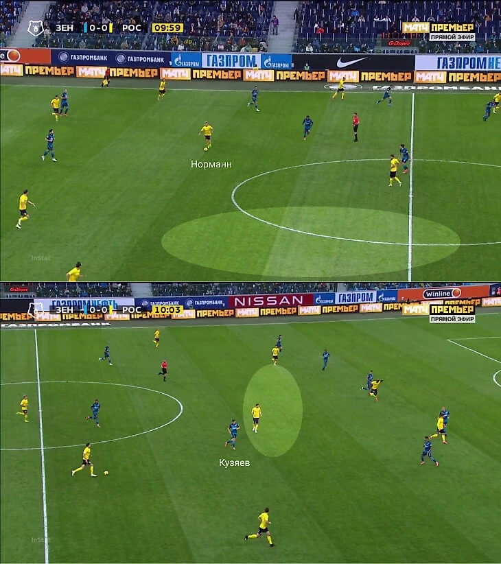 Однако свой гол «Ростов» заслужил: гости часто выходили со своей половины через Норманна и пользовались позиционными косяками «Зенита» при прессинге.