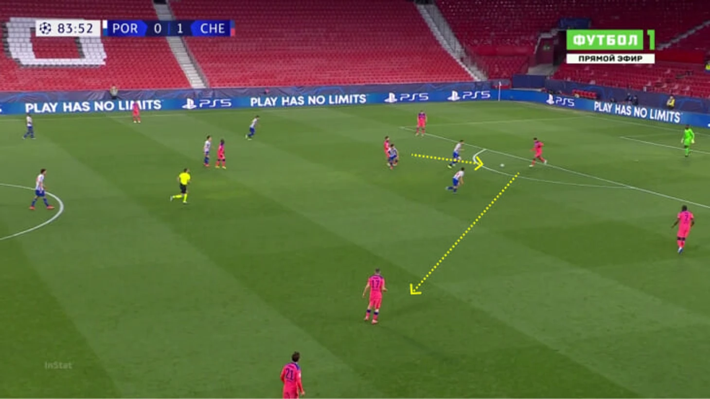 3. Гол вынудил «Порту» прессинговать гораздо выше, поэтому «Челси» мог завершать матч дважды (Вернер пробил выше, Пулишич попал в перекладину).