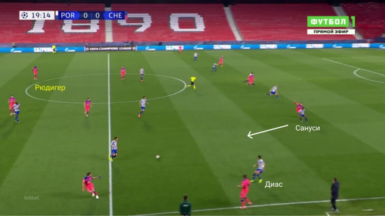 Главная проблема «Порту» во втором тайме – Аспиликуэта, Кристенсен, Рюдигер легко контролировали мяч против Мареги и Диаса. Чтобы накрыть третьего, часто выдвигался вингер, но тогда «Челси» получал свободного игрока. Вторая проблема – Жоржиньо и Ковачич легко создавали ситуации 2-в-1 при розыгрышах. Так «Челси» получил два шикарных момента + успокоил «Порту» (моменты и давление португальцев не были такими весомыми).