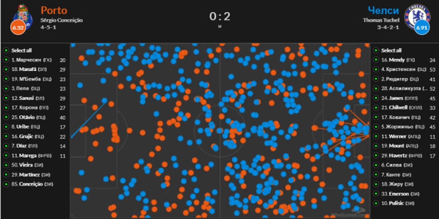 Другая важная составляющая матча – класс «Челси». Благодаря Жоржиньо, Ковачичу и Маунту были заметны надежность и спокойствие команды Тухеля. Они постоянно выигрывали свои микроэпизоды и становились главными участниками голевых моментов. «Порту» снова был интересен, но решил свои моменты: Сануси и Марега упустили шикарные голевые шансы, а Манафа привез второй гол (+ неудачно перед собой отбил Марчесин).