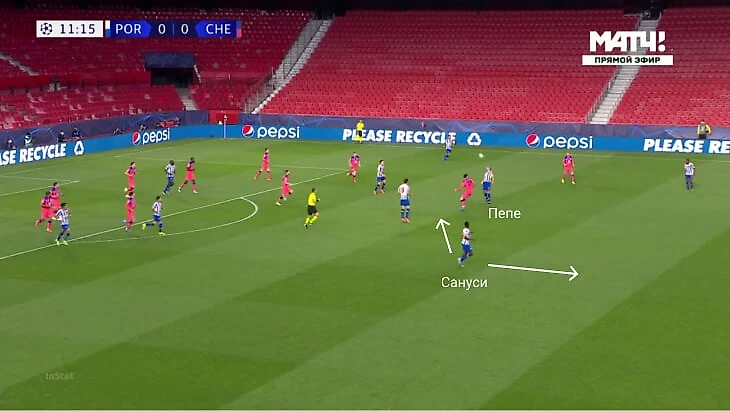 От этого было два бонуса: первый – так они зажимали «Челси» еще сильнее, второй – подстраховка включений центральных защитников и элемент неожиданности для «Челси». Так «Порту» создал по опасному подходу в каждом из таймов и заработал несколько угловых, где хозяева были в порядке: опасные удары Сануси и Пепе + удар Груйича прямо в Менди.
