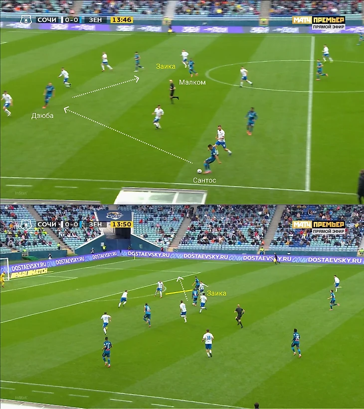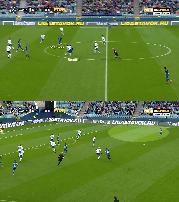Задумка работала хорошо в двух вещах. Во-первых, «Сочи» не персоналил «Зенит» от и до, поэтому Малком и Вендел все же обладали определенной свободой.