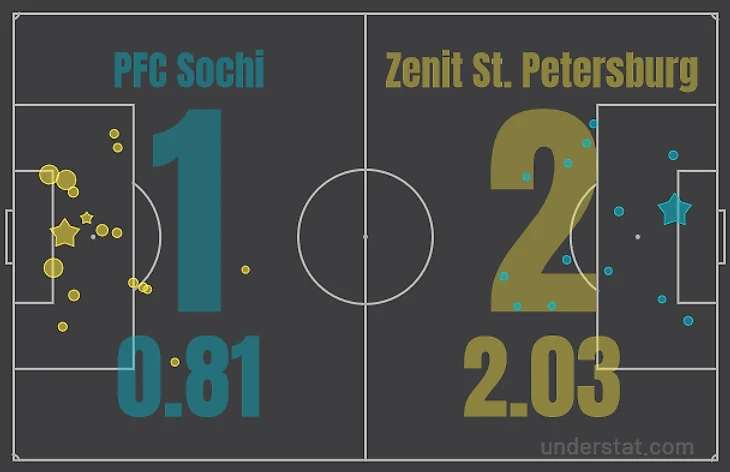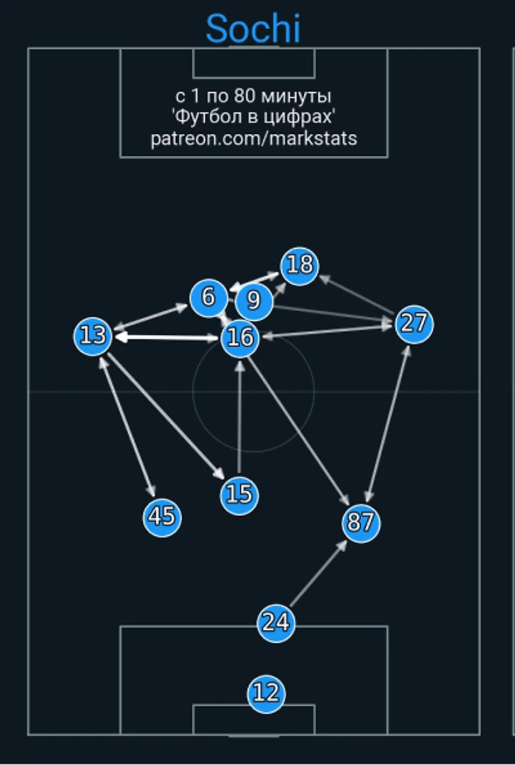 «Сочи» умно заполнял центр, а Малком и Вендел далеко не всегда отрабатывали как надо. На карте передач видно, что шесть игроков «Сочи» стабильно работали в финальной трети «Зенита». Петербургская команда часто группировалась на одном из флангов, но Нобоа, Юсупов и Бурмистров все равно разбивали защиту.