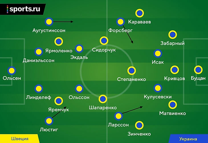 В-третьих, Швеция прекрасно заполняла центр. Туда приходили Ларссон и Форсберг, периодически опускались Исак и Кулусевски. Если за форвардами выдвигались защитники, то Зинченко и Караваев не бросали фланги.