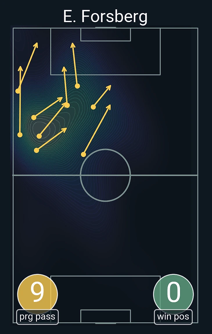 Похожие истории были и во время перекладины Форсберга и дальнего удара Ларссона в начале второго тайма. С позиционной точки зрения гол пришел так же: Швеция перегрузила центр, сняла давление с Форсберга (помогли сместившиеся Исак и Кулусевски) и вывела его на опасную позицию (в опорной зоне сжалась украинская тройка, тогда как шведы располагались шире). Из 12 ударов по воротам на его счету сразу 5.