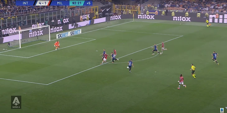 В данном эпизоде особенно умиляет левый полуфланг «Милана», походящий скорее на проходной двор, нежели на оборону кандидата на чемпионство.