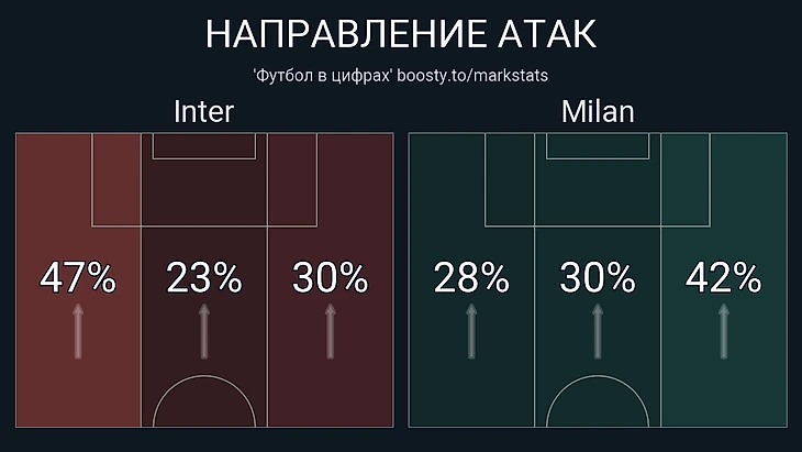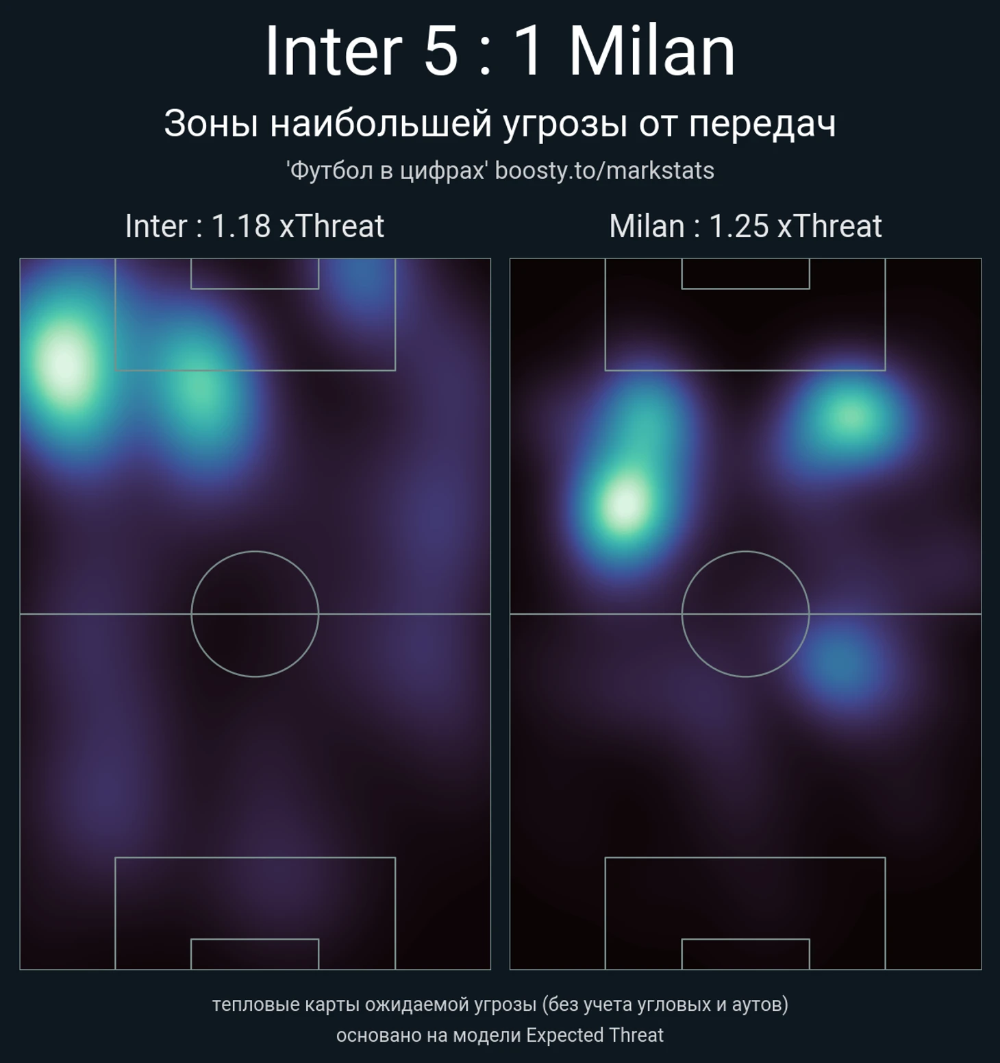 Левый фланг «Милана» был окончательно раздавлен заменами Индзаги, наглядным свидетельством чему служит, в частности, тепловая карта угроз «Интера»…