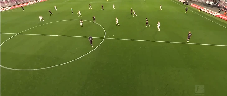 Перелом во втором тайме произошёл внезапно. Он не был продиктован выходом Геррейру вместо Горецки, более того – даже Тель, сменивший Комана, не выступил уже привычным драйвером успеха «Баварии». Фактически гости лишь сбалансировали фланговые атаки, чаще задействуя левый край, а ещё улучшили культуру паса и обращения с мячом. Особенно это касалось Сане, примерившего на себя лидерские качества. Лерой избавился от ненужной вальяжности в дриблинге и чаще стал открываться в центре. Так, к слову, и пришёл его гол.