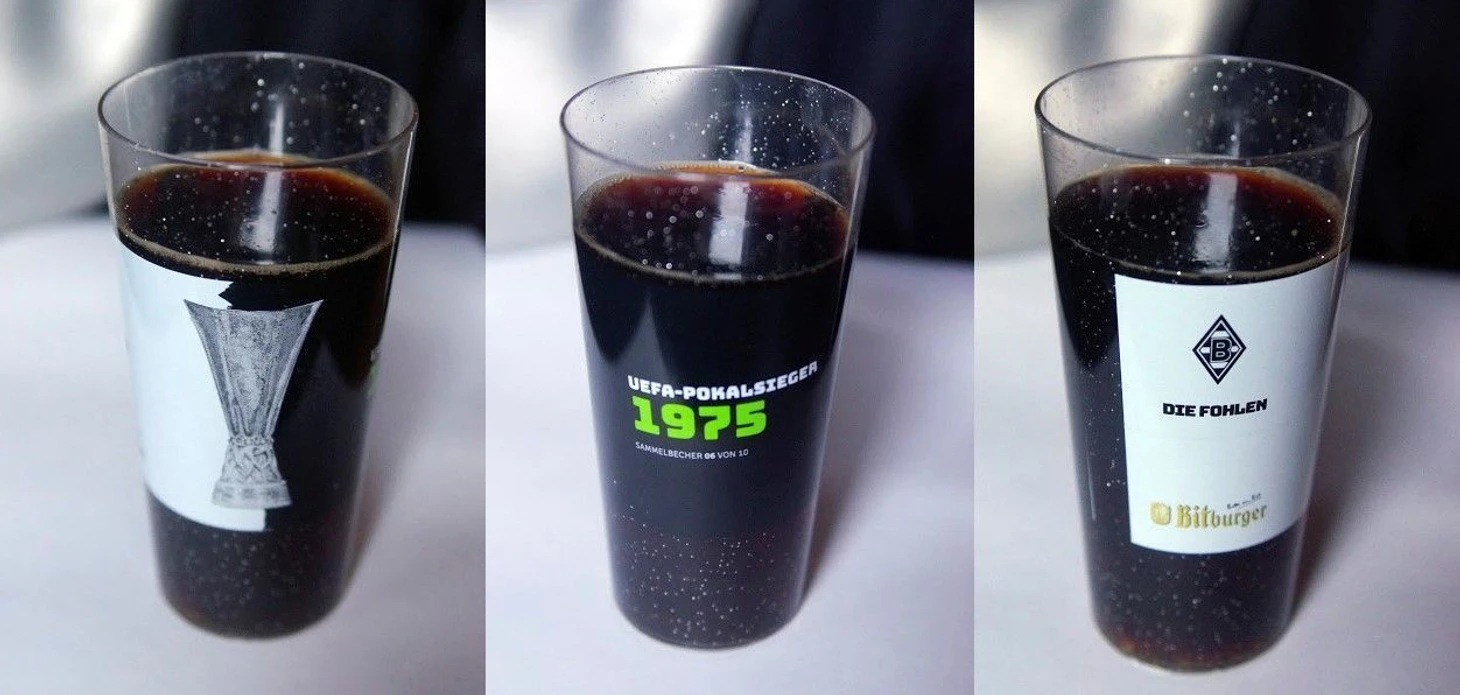 Линейка пластиковых бокалов, выпущенных официальным партнером «Боруссии» Bitburger специально для торговли пивом на домашнем стадионе, имеет несколько вариантов оформления, каждый из которых посвящен историческим достижениям клуба. Например, победе в Кубке УЕФА 1975 года (на верхнем фото) или Кубке Германии 1960-го (на нижнем). Выбросить такие стаканы после использования по прямому назначению рука не поднимается, многие уносят их с собой в качестве сувенира