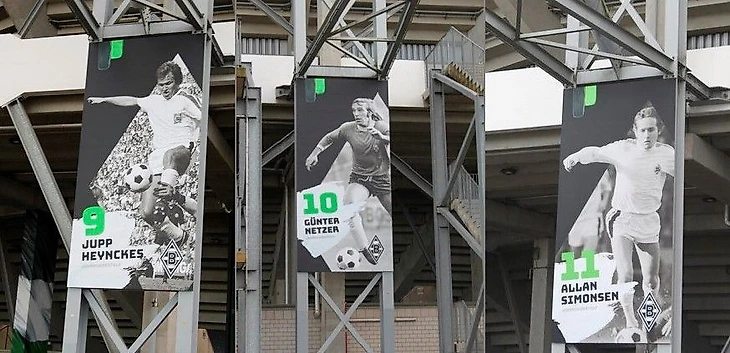 На фото — слева направо: Юпп Хайнкесс, как игрок — чемпион мира и Европы, четырехкратный чемпион Германии, обладатель Кубка страны и Кубка УЕФА, как тренер — один из четырех человек, добивавшихся победы в Лиге Чемпионов с двумя разными клубами — «Реалом» и «Баварией». Гюнтер Нетцер — дважды чемпион Германии, дважды — Испании, по разу — мира и Европы. Абсолютно культовой фигурой для фанатов «Боруссии» он стал после того, как в 1973 году, самовольно выйдя на замену в дополнительное время мачта за национальный Кубок против заклятых врагов из «Кельна», первым же дальним ударом принес победу Гладбаху. Наконец, Аллан Симонсен — первый и до сих пор единственный датчанин, удостоившийся «Золотого мяча»