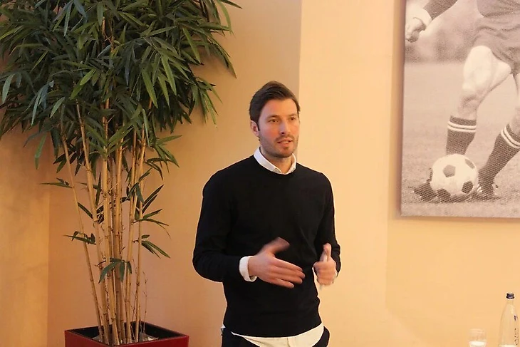Филипп Граболле во время мастер-класса для студентов факультета «Менеджмент в игровых видах спорта» и других участников стажировки, организованной бизнес-школой RMA в Германии