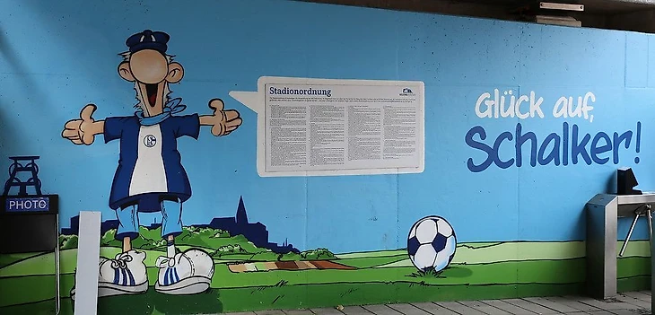 Приверженность шахтерским корням «Шальке» воспитывает в своих болельщиках с младенчества. Самый распространенный символ горнодобывающей отрасли — перекрещенные молот и кирка — заметен даже на продающейся в клубном магазине одежде для самых маленьких. «Фелтинс Арена» встречает посетителей старинным шахтерским приветствием «Glück Аuf!» (варианты перевода: Счастливо на-гора!, Счастливо выбраться!, Счастливо вернуться на поверхность!). Расплатиться в здешних буфетах можно только с помощью кнаппенкарты («кнаппены» (горняки) — одно из прозвищ «Шальке»). Футболисты выходят на поле по тоннелю, стилизованному под ствол шахты, и даже в графическом оформлении стен оборудованной в подтрибунном помещении часовни, где за время ее существования состоялись 2 тысячи венчаний и 5 тысяч крестин, угадывается шершавая текстура каменного угля