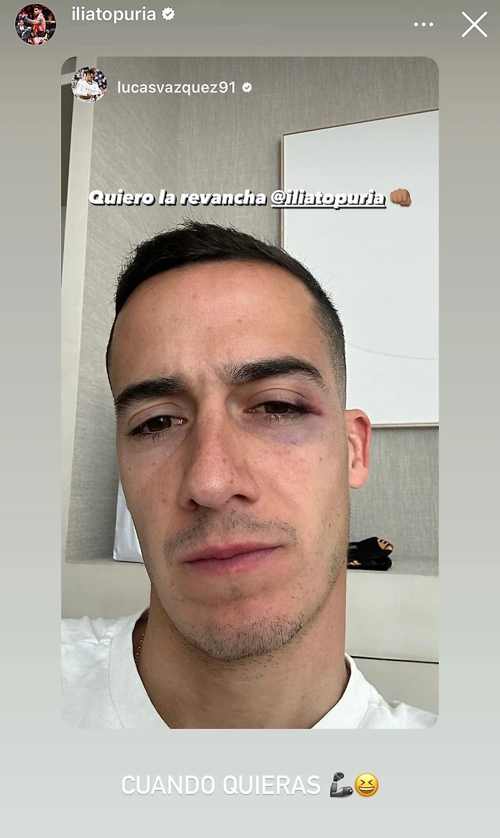 Защитник «Реала» отнесся к ситуации с юмором. Лукас выложил фото своего фингала, в шутку обратившись к Илие Топурии, который в матче с «Севильей» нанес первый символический удар по мячу.
