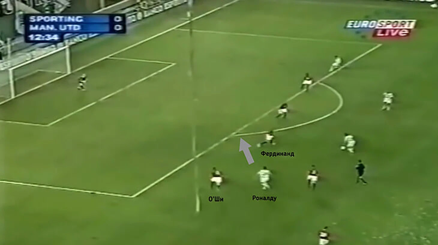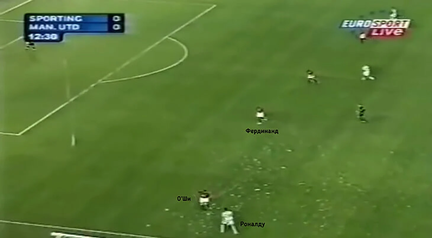 Криштиану вернул мяч партнеру и моментально открылся за спину ирландца. Получив мяч, он прицельно навесил в штрафную с левой ноги, однако Фердинанд не дал нападающему «Спортинга» пробить по воротам.