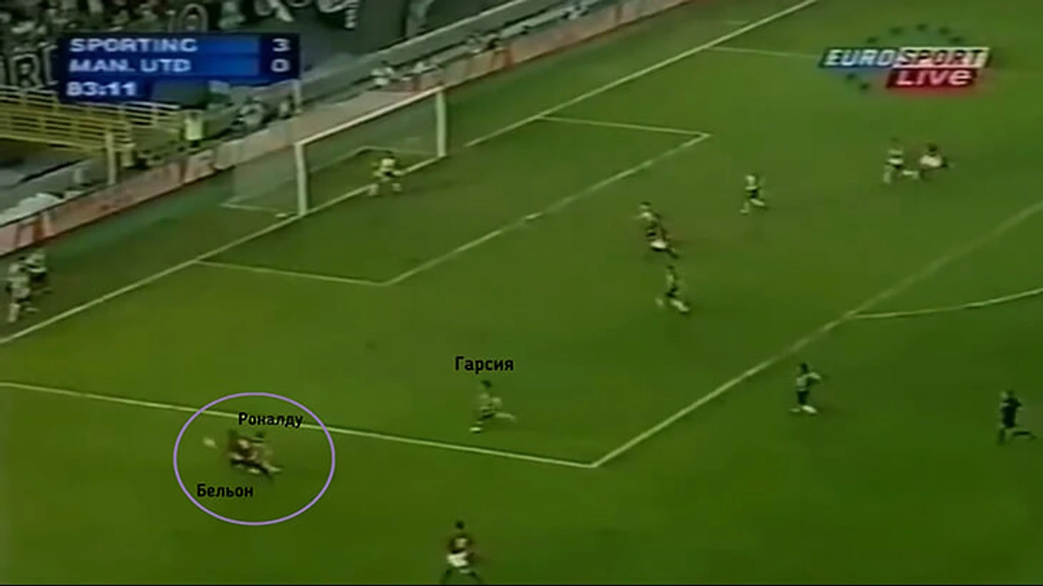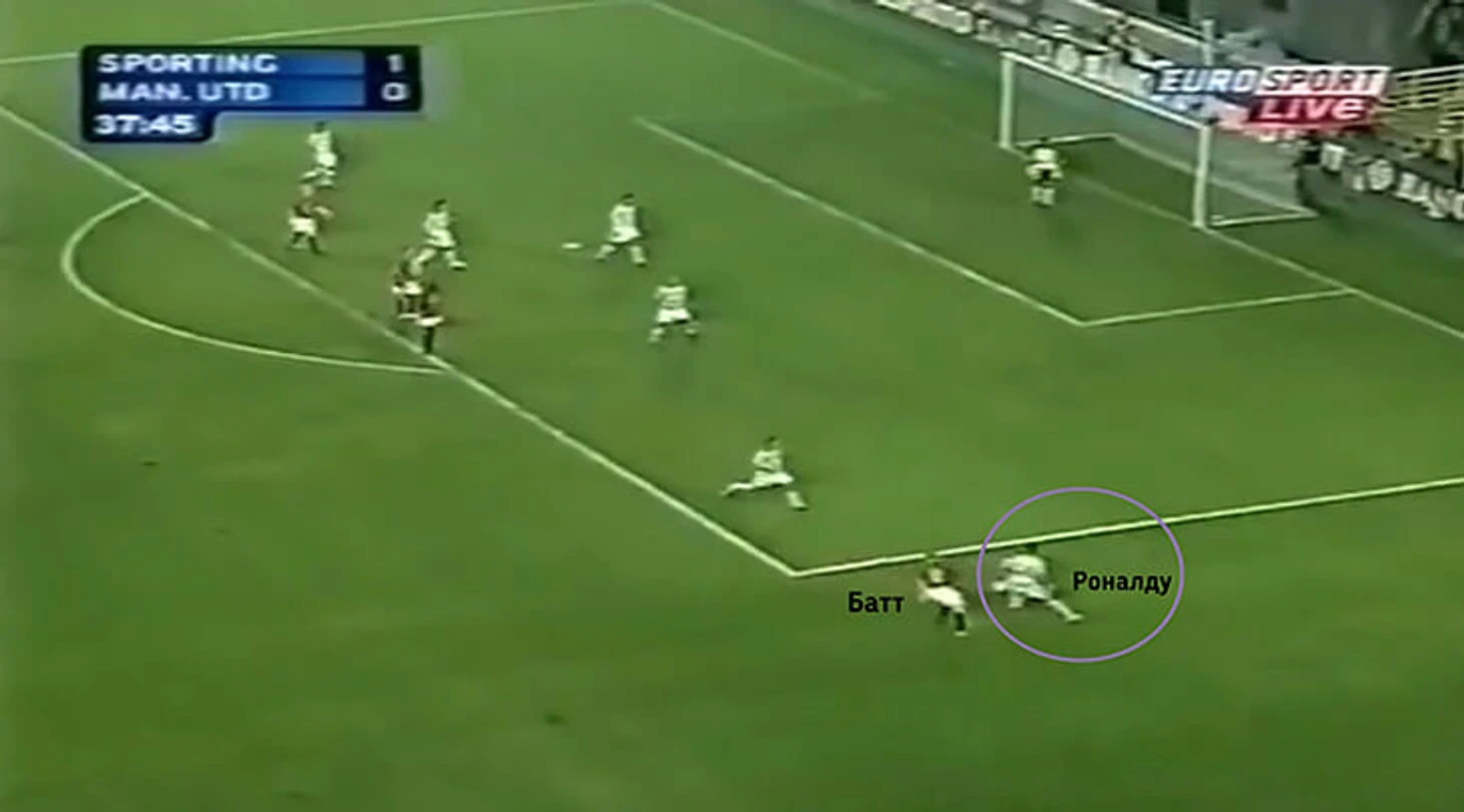 Давид Бельон обыграл правого защитника «Спортинга», однако Роналду сделал рывок назад, успел подстраховать партнера и заблокировал навес игрока «МЮ» в подкате.