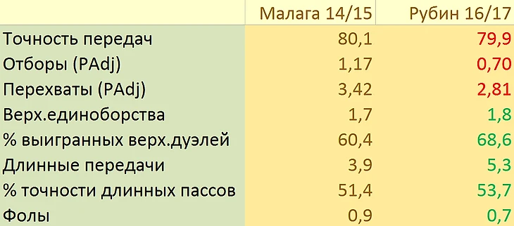 Зависимость команды от Рочины наглядно показала травма испанца. Как только 21-й номер попал в лазарет, «Рубин» сильно сдал в остроте атак. Рубен много ассистировал, создавал моменты партнерам – 0,19 xA/90 (ожидаемы ассисты на 90 минут) – седьмой показатель лиги среди игроков с 1000+ минут на поле. Он отлично исполняет стандарты – в десятке лучших по созданным голевым моментам со стандартов. Наконец, Рочина обладает дриблингом. 2,2 обводки на 90 минут с 54,4% успешности – поистине выдающиеся показатели для нашего чемпионата. Оптимальная «десятка», способен протащить мяч, отдать последний пас, исполнить стандарт и завершить эпизод самостоятельно.