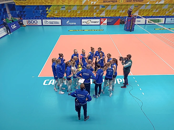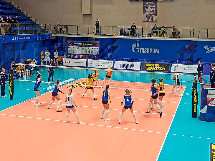 В этом матче встречались одни из старейших женских волейбольных команд России: Ленинградка (1935 год) и Динамо Краснодар (1946). Клуб из Краснодара хотя и имеет 70-летнюю историю, но наибольших достижений добился уже в российское время: 3-кратный обладатель Кубка России, 3-кратный бронзовый призёр чемпионатов России, двукратный победитель Кубка Европейской конфедерации волейбола (ЕКВ), победитель Кубка вызова ЕКВ (аналог Кубка обладателей кубков). Интересно, что с этим клубом я встречаюсь уже не в первый раз, правда предыдущий был не на спортивной арене: в 2019 году, мы с супругой летели самолетом в СПб из Краснодара, и с нами вместе, как раз на игру с Ленинградкой, летело Динамо Краснодар. Помню очень долго рассматривал я тех спортсменок, в тот момент это было для меня честью - лететь вместе с одними из лидеров чемпионата России. Из всей той команды на данном матче я узнал только главного тренера - Константина Ушакова (в самолете очень скромного, но довольно энергичного на тренерском мостике), и либеро команды, блондинку Екатерину Третьякову, которая, кстати, как оказалось, до Динамо играла в Ленинградке, а после матча к ней было повышенное внимание со стороны петербургских болельщиков.