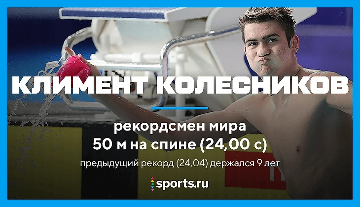 На следующий день выстрелил 18-летний Климент Колесников – у него золото и новый рекорд мира на полтиннике на спине (24,00 с).