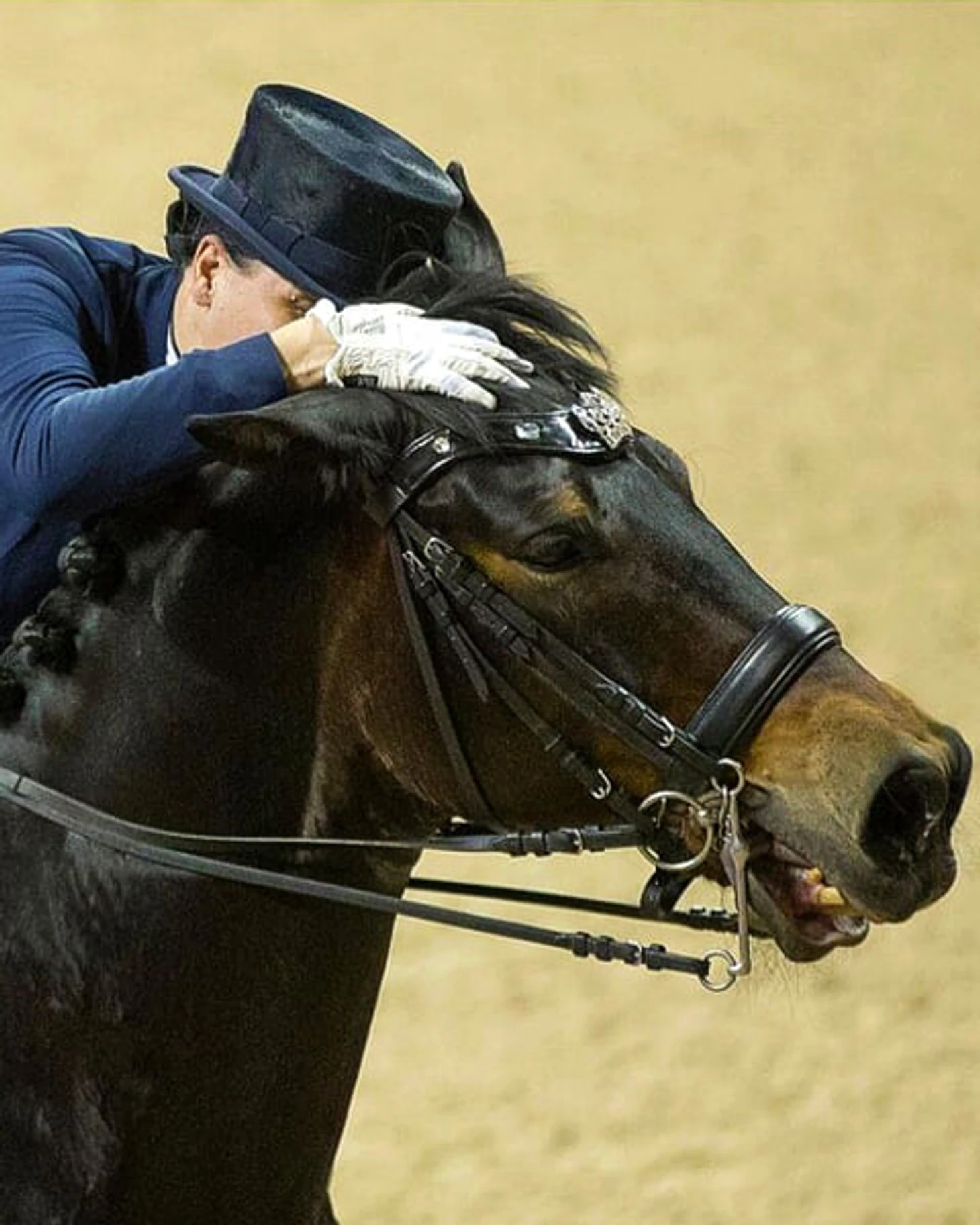 Мой конь еще до выполнения элемента догадывается, что я хочу сделать. Это ментально очень умная лошадь, которая считывает много информации. У меня были безумно красивые лошади, но спустя день они забывали, что мы делали. И каждый раз повторение – мать учения, а это тяжело.