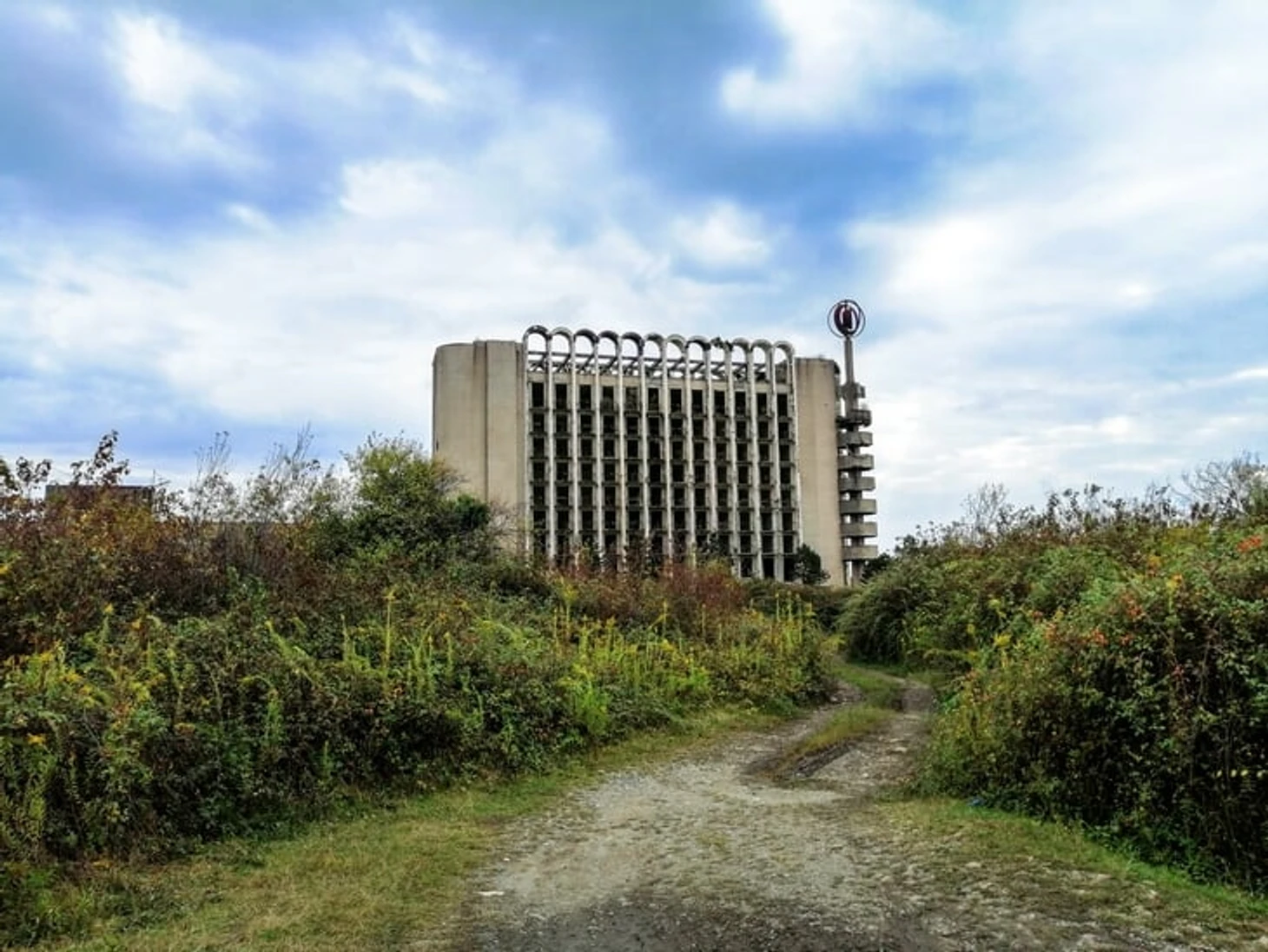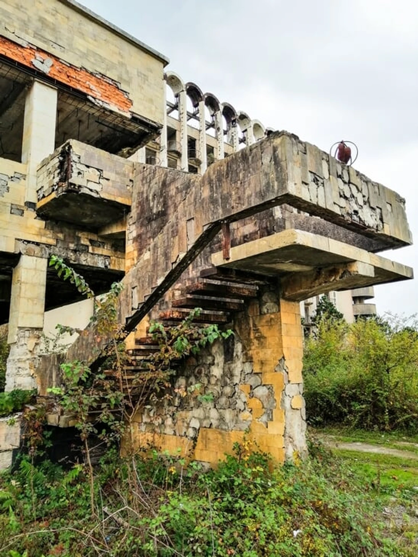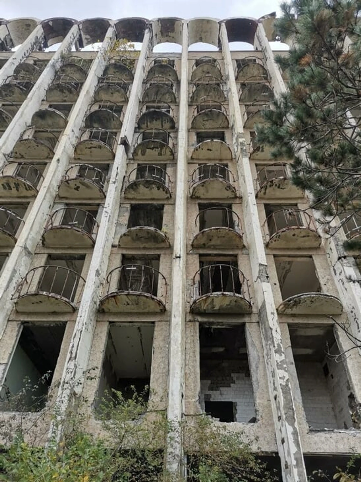 Все это было – и резко исчезло в начале 90-х. Сейчас от легендарной базы остались только руины и воспоминания. В ходе грузино-абхазского конфликта (1992-1993 гг) «Эшеру» изрешетили – неподалеку через реку Гумисту проходила линия фронта. А спортивная база – точнее ее 10-этажная гостиница – использовалась как самая высокая точка боевых действий.