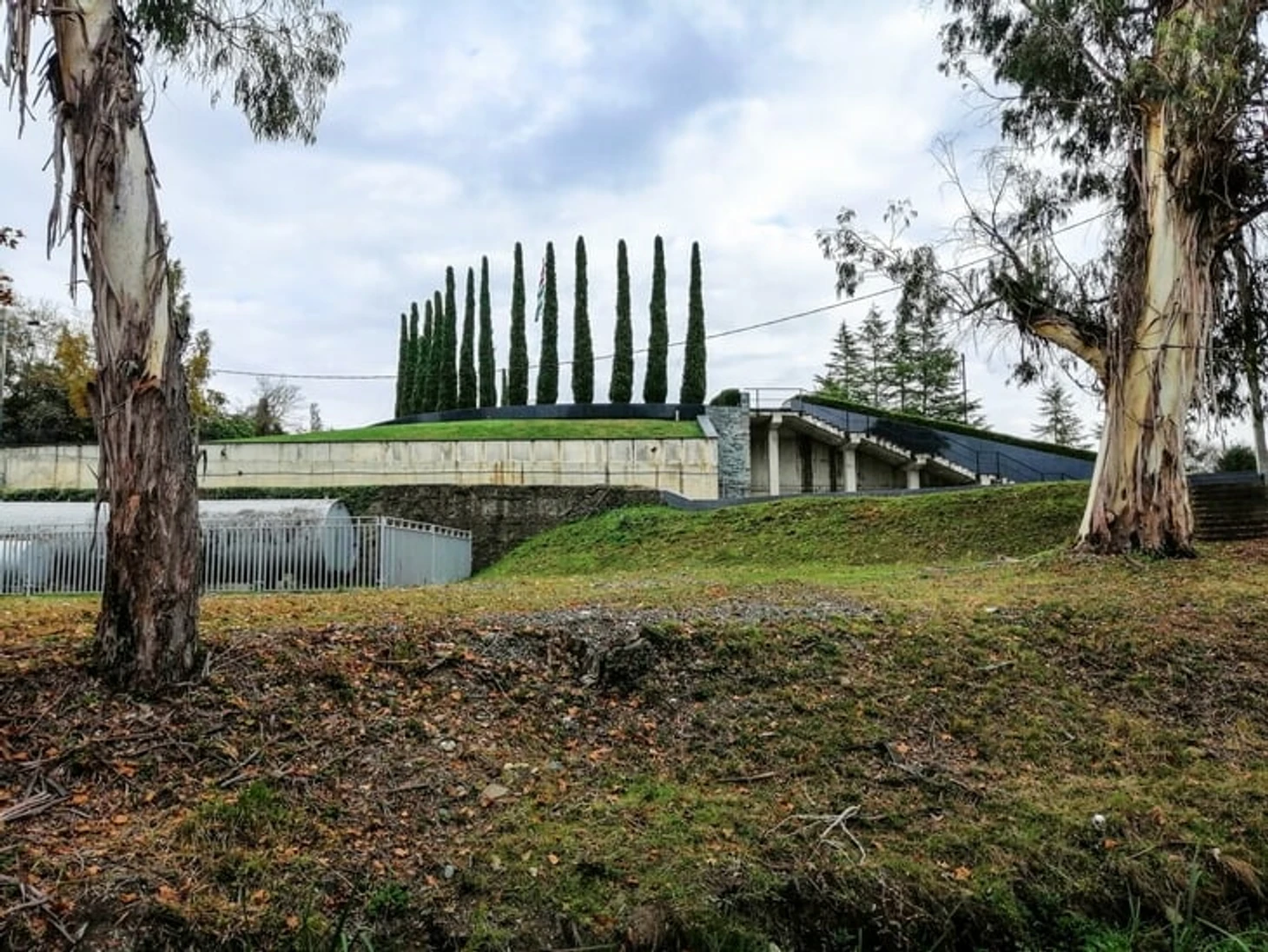 Мы несемся по разрушенному, почти мертвому городу – мимо домов с разбитыми окнами к мемориалу первого президента Абхазии Владислава Ардзинбы. Стройные кипарисы, ухоженная территория – чуть ли не единственный оазис в городе: