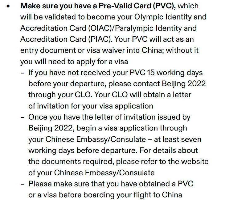 В идеале за 15 рабочих дней у спортсмена уже должна быть личная карта участника для въезда в Пекин.