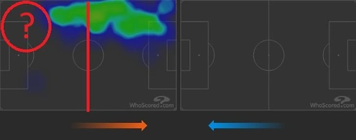 Без сомнения можно сказать, что Марсело – один из самых атакующих защитников мира, но главная цель игрока оборонительного плана – это прежде всего оборона. Тепловая карта бразильца всегда выдает его, что бы он не делал. Большую часть времени Марсело проводит на половине соперника, подключается почти ко всем атакам, но совершенно не спешит возвращаться в оборону.