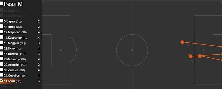 Стоит так же упомянуть и о Марко Асенсио. В игре против Алавеса он нанес целый один удар в ворота противника, а в игре против Леванте коснулся мяча целых 40 раз, а его средняя позиция была около углового флажка на левой бровке. Все это при том, что Бензема ушел уже после первого тайма, а с углового флажка кроме как навешивать сделать почти ничего нельзя. Во втором тайме вышел Мариано, но он совершенно не привязан к центру нападения и очень часто перемещается на фланги. Из этого всего можно сделать вывод, что Асенсио играл совершенно в холостую.