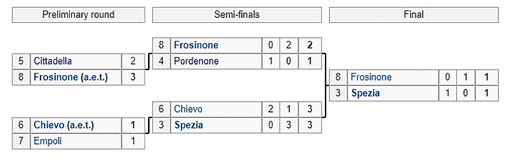 Новейший путь клуба начался в 2008 году и связан с именем бизнесмена итальяно-нигерийского происхождения Габриэля Волпи. Волпи реорганизовал команду после банкротства, под его руководством «Специя» прошла через полуофициальные чемпионаты и Серию С, пока в 2012 году не вышла в Серию Б, где провела следующие восемь лет. Наконец, в прошедшем сезоне команда заняла третье место и попала в плей-офф. В полуфинале «орлы» по сумме двух матчей прошли «Кьево», а вот в финальном матче против «Фрозиноне» Алессандро Несты было задействовано правило «преимущества по таблице», о котором я говорил ранее. 1-1 по сумме двух матчей, и «Специя» впервые в истории в Серии А!