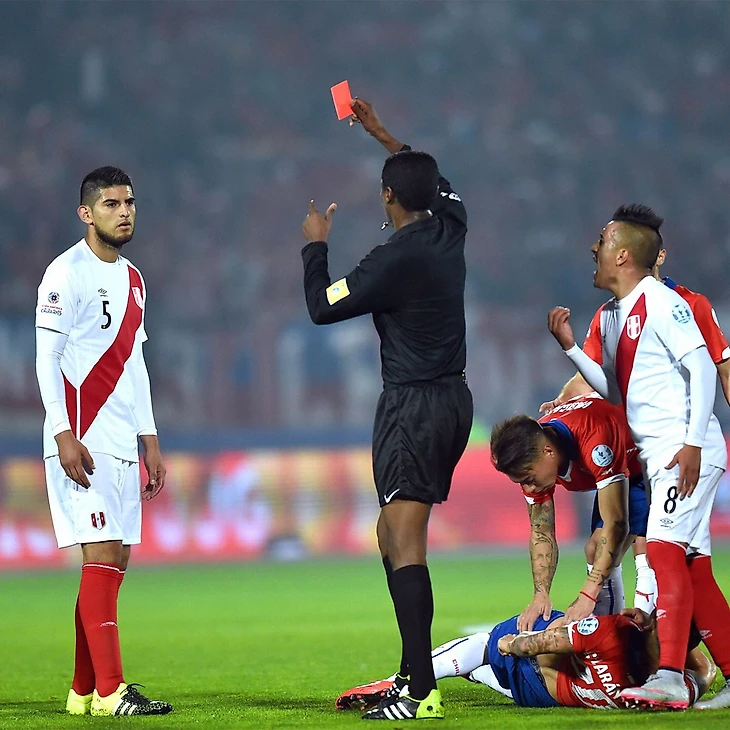 20-тая минута. Решающий момент в решающей игре Перу на КА-15. 1/2 финал против Чили. В последствии привел к идиотской замене Кристиана Куэвы.