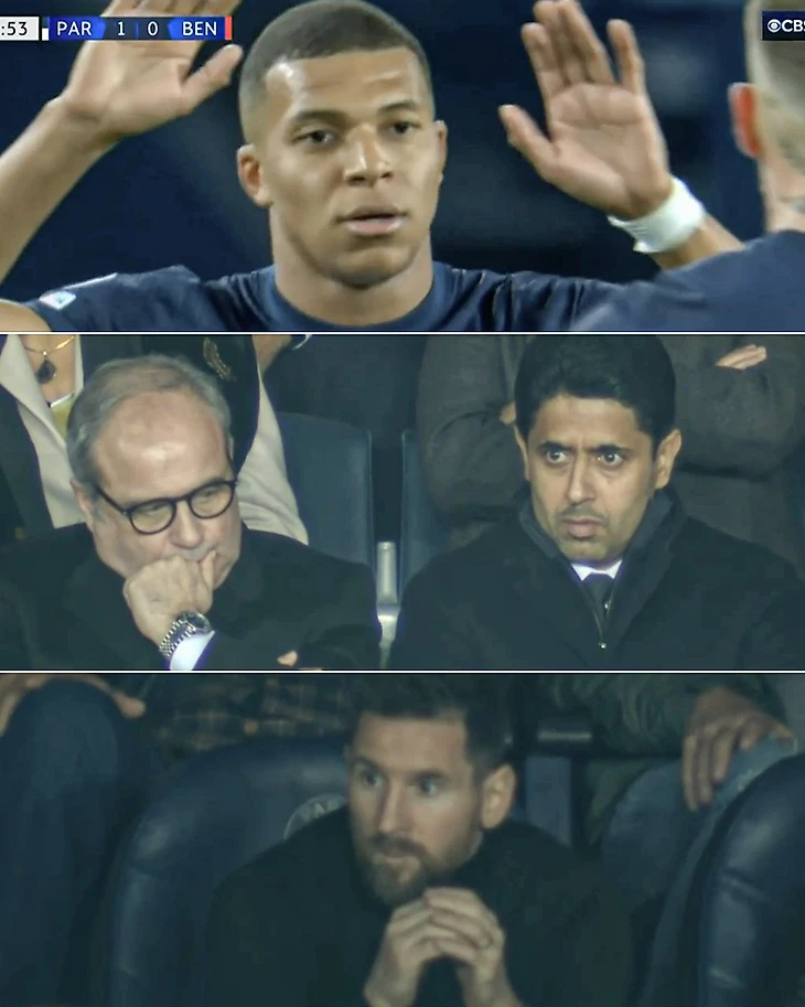 Интересно, что счет в матче с «Бенфикой» открыл именно Килиан – забил с пенальти в первом тайме. Сразу после гола камеры выхватили трибуны «Парк де Пренс» – сначала показали Месси, который пропускал матч из-за травмы), а потом президента Нассера Аль-Хелайфи и спортивного директора Луиша Кампуша. Реакция все троих на успех нападающего была, мягко скажем, сдержанной.