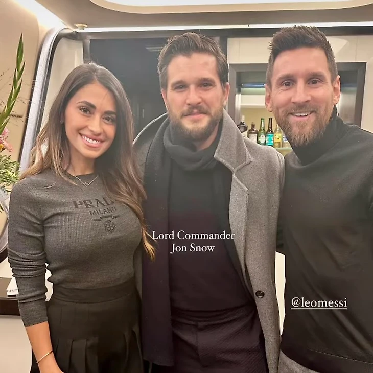 Но после матча Лео был уже в хорошем настроении – после просмотра игры, закончившейся вничью 1:1, аргентинец в компании жены фотографировался с Королем Севера – Китом Харингтоном – актером, исполнившим роль Джона Сноу в нашумевшем сериале «Игра Престолов».