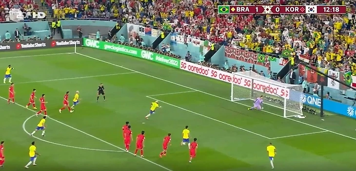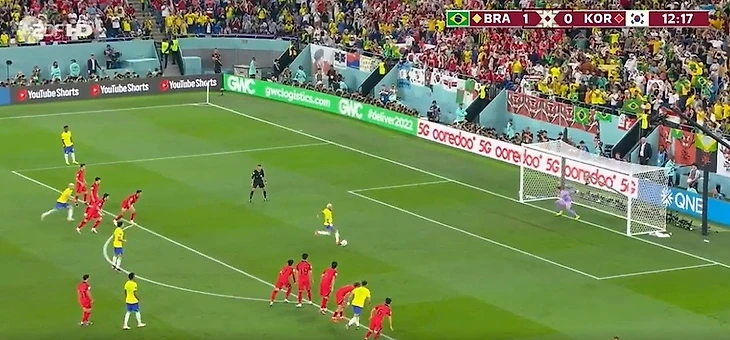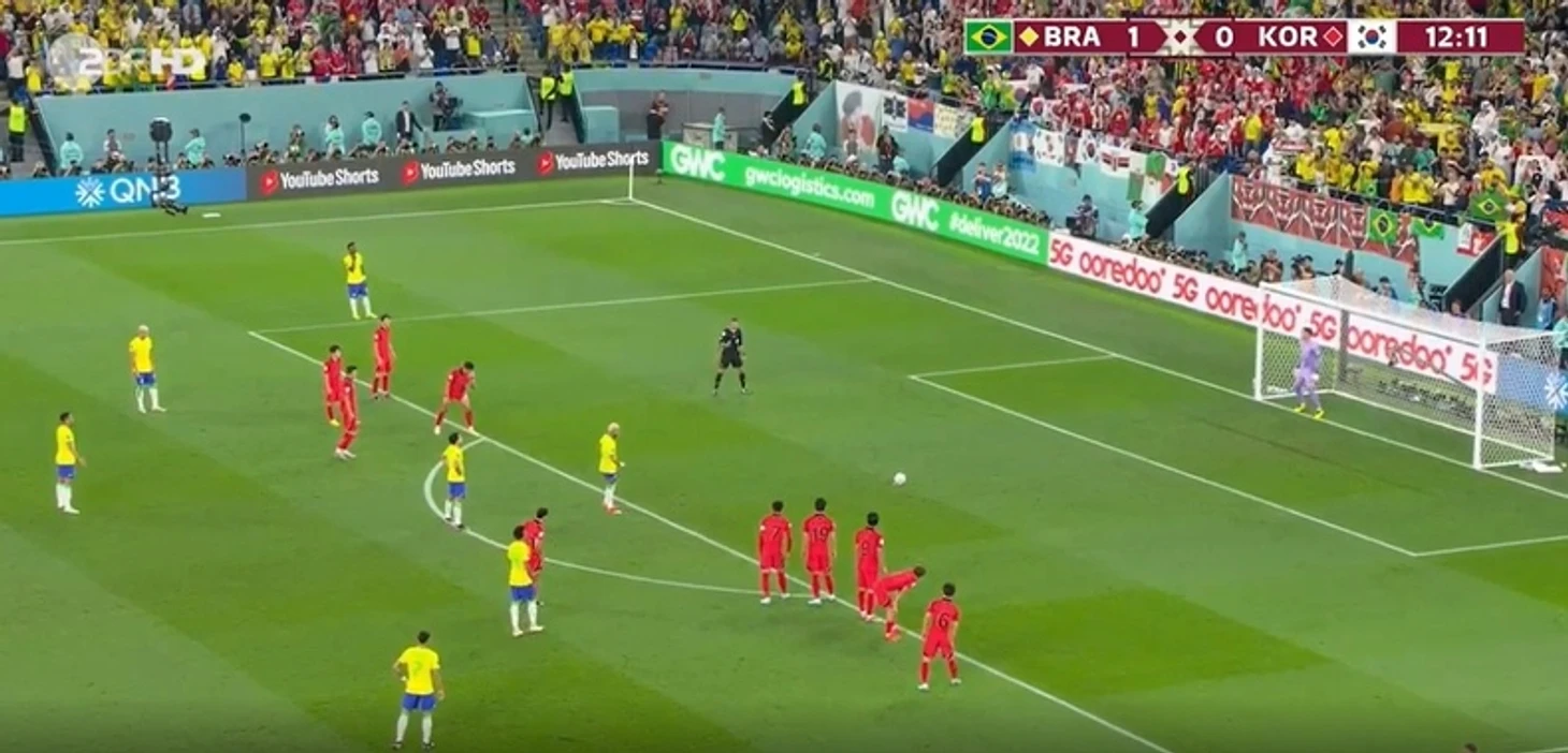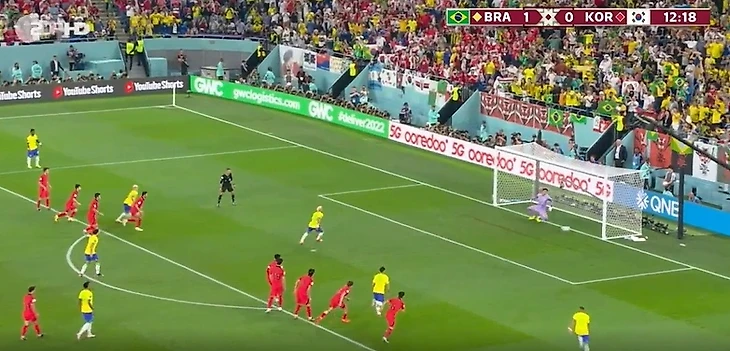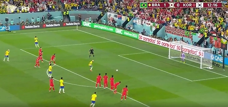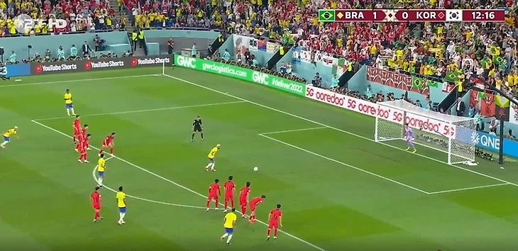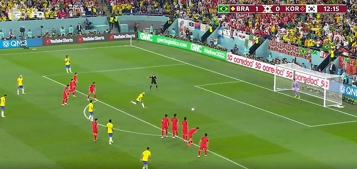 Он полностью сбил с толку Кима, провернув очень специфичную подготовку к удару. Она длилась очень долго — Неймар подкрался к точке, выдержал издевательскую паузу, которая продолжалась больше 10 секунд, потом несколько раз переступил с ноги на ногу и без усилий покатил в правую сторону. Ким Сын Гю настолько заворожил витиеватый разбег бразильца, что вратарь даже не прыгнул за мячом, у него просто подкосились ноги.