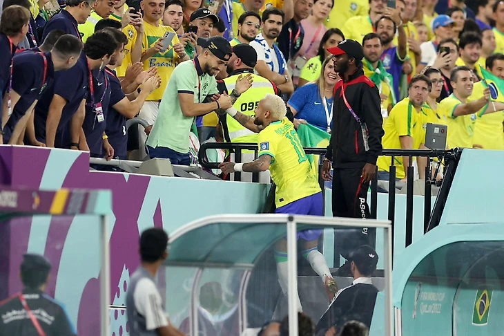 Бразильский вингер «ПСЖ» после победы над Южной Кореей отправился на трибуны, чтобы обнять травмированного Алекса Теллеса.