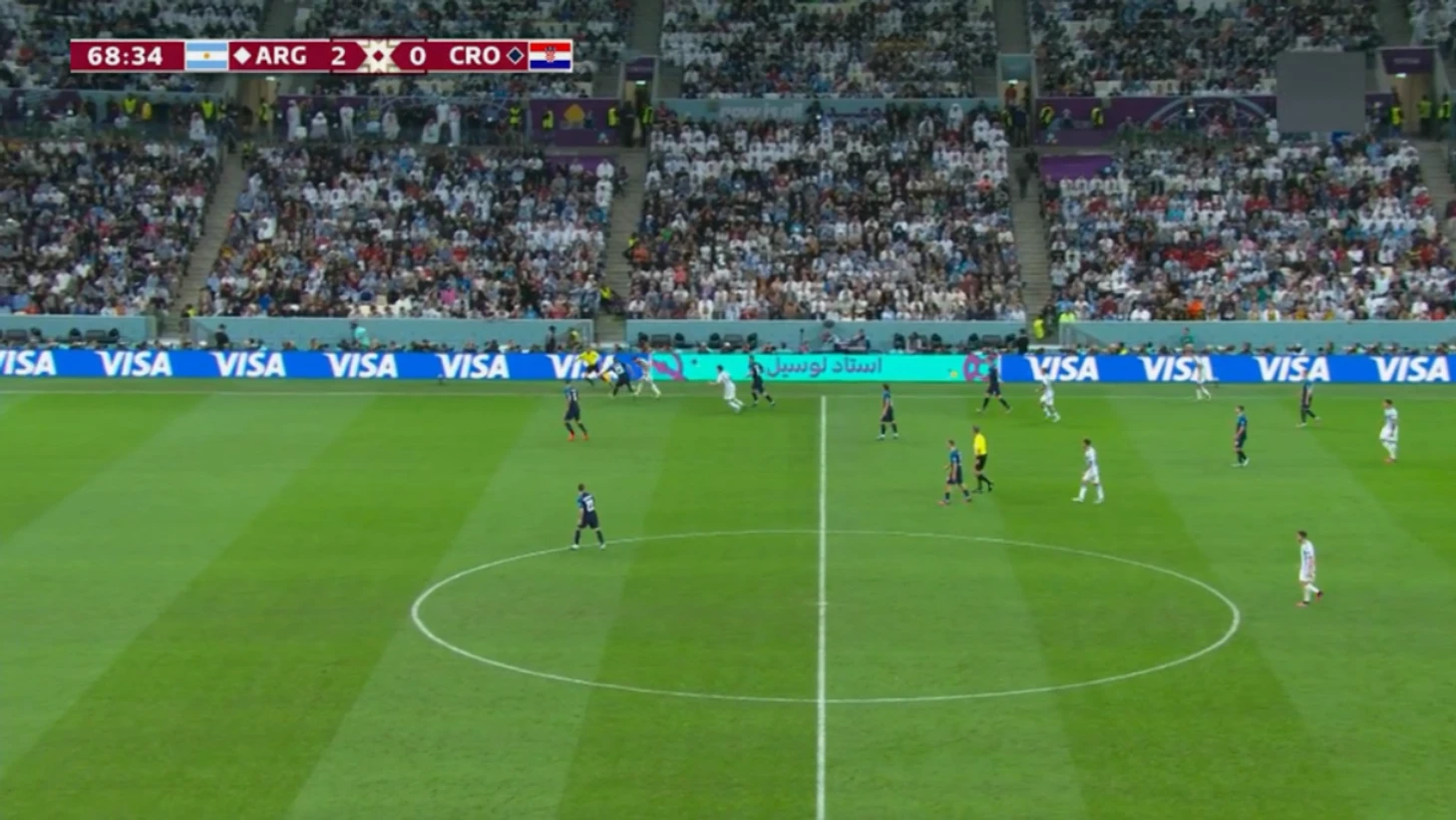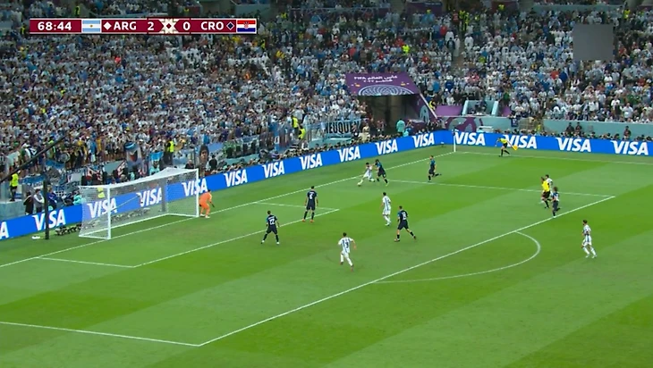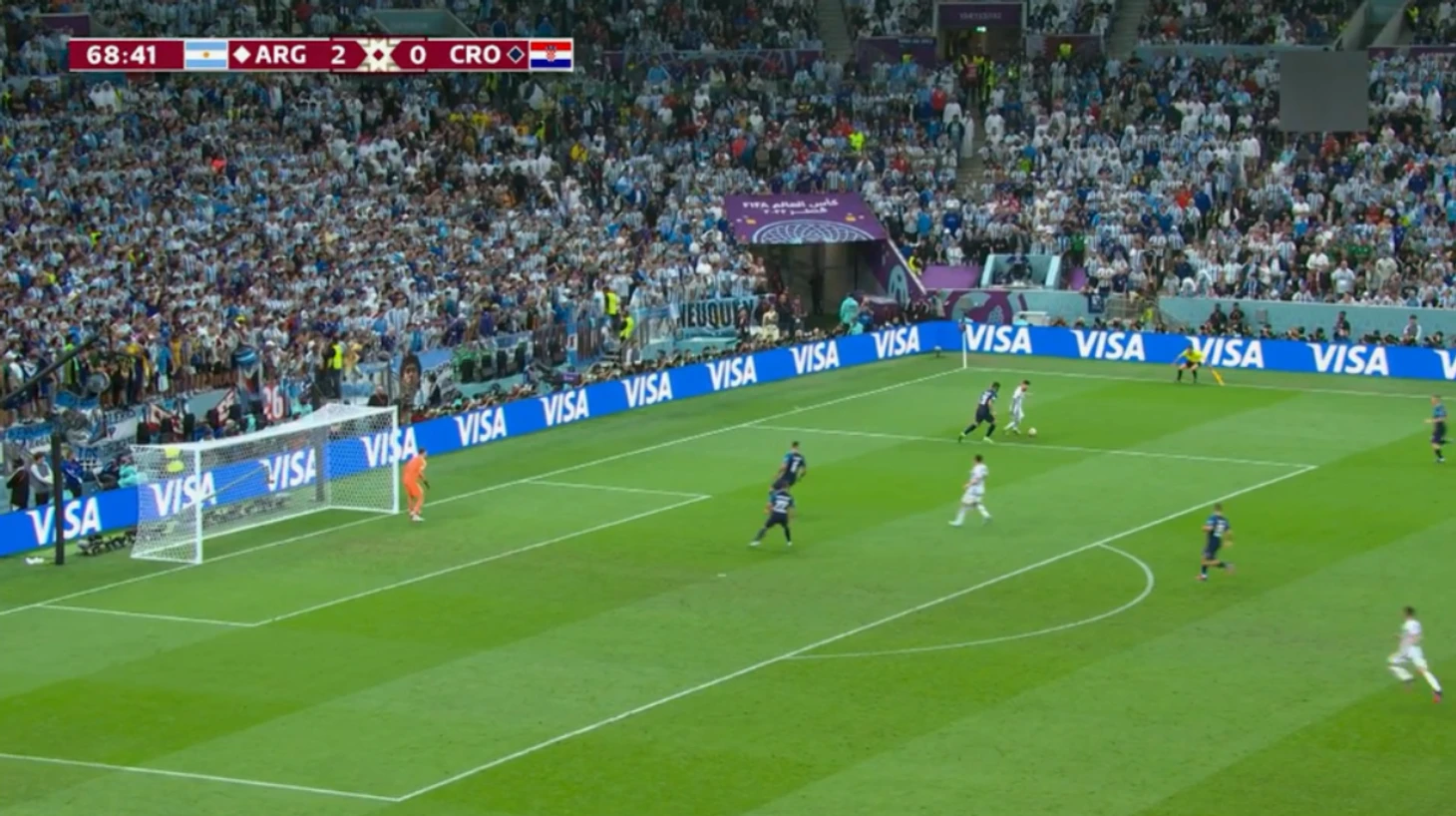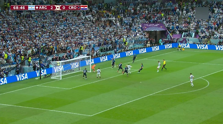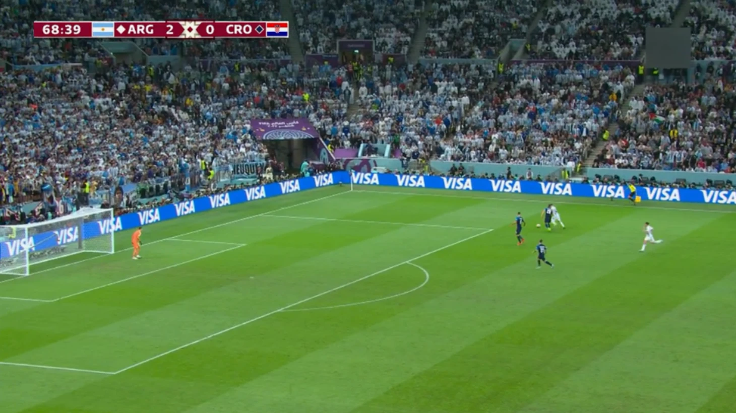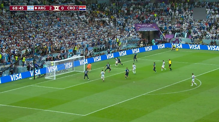 Сборная Аргентины во втором тайме полуфинального матча чемпионата мира в Катаре громит сборную Хорватии со счетом 3:0. Счет матча с пенальти открыл Лионель Месси, он же сделал все, чтобы случился третий гол, который забил форвард сборной Аргентины и «Манчестер Сити» Хулиан Альварес.