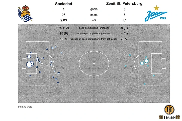 Безусловно, в таком преимуществе испанцев по многим компонентам есть определенный "читинг" статистики. Давайте тогда посмотрим исключительно на то что получилось на выходе 2,83 xG, хорошо, уберем весь "мусор" невесомых ударов, получится все равно более чем двухкратное преимущество по xG.