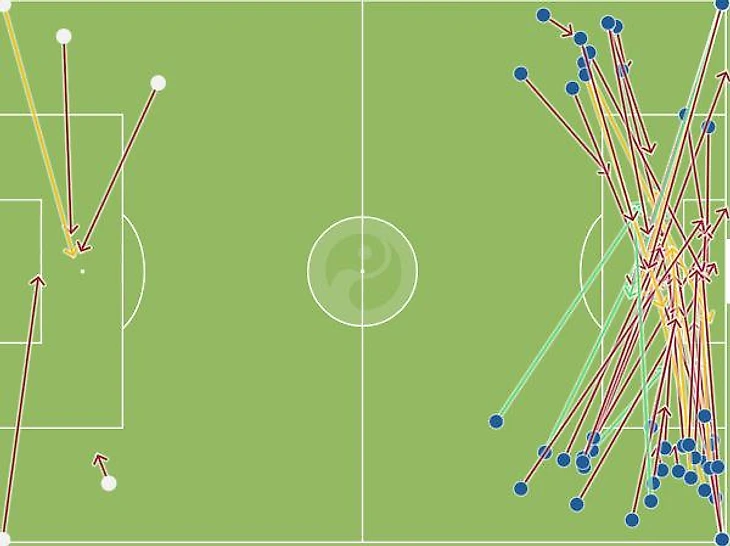Крайний в разборе негативный момент (потерпите), Реал сделал 39 deep complitions и 15 very deep complitions, это точные передачи в зону в радиусе 25 ярдов (22,5 м) от ворот, и very deep completions - точные передачи в зону в радиусе 15 ярдов (13м) от ворот. Данные показатели высоко оценивают аналитики компании Opta, так вот обе цифры огромны сами по себе, и скорее всего рекордны, по крайней мере я не видел больше 38 deep complitions за матч, поздравляю с "рекордом"! Подчеркну, что 39 это не кроссы,а проникающие точные передачи в зону в радиусе 22м от ворот, ключевое слово ТОЧНЫЕ, из 39 только 12 после кроссов, включая 4 после угловых. Кстати, справедливости ради, пенальти за фол Ивановича на Янузае был, повезло нам с судьями, а если бы серб не фолил, то была бы опасная передача с линии, с явно не нулевым потенциалом.
