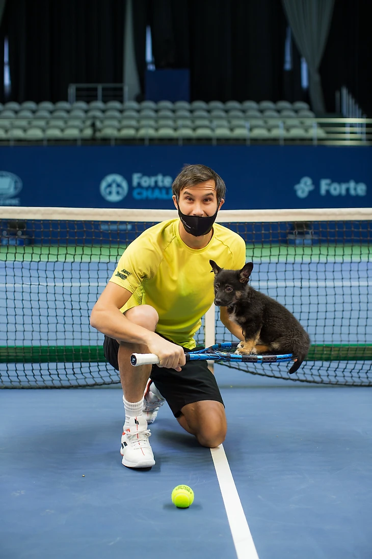 Главная цель фото-проекта – поддержать работу волонтеров и городских приютов, привлечь внимание общества к заботе о животных. В один из свободных дней турнира теннисисты Александр Недовесов, Евгений Донской, Дмитрий Попко, Доминик Палан и Ян Бондаревский вышли на корт национального теннисного центра вместе с собаками. Здесь они вместе с питомцами сыграли в мяч и провели милую фотосессию.