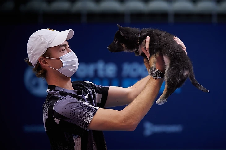 😍 Милота дня: Недовесов, Донской и Попко вышли на корт вместе с собаками. Это акция в поддержку волонтеров и приютов