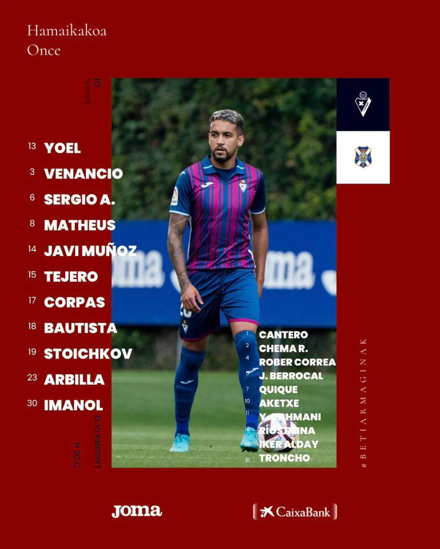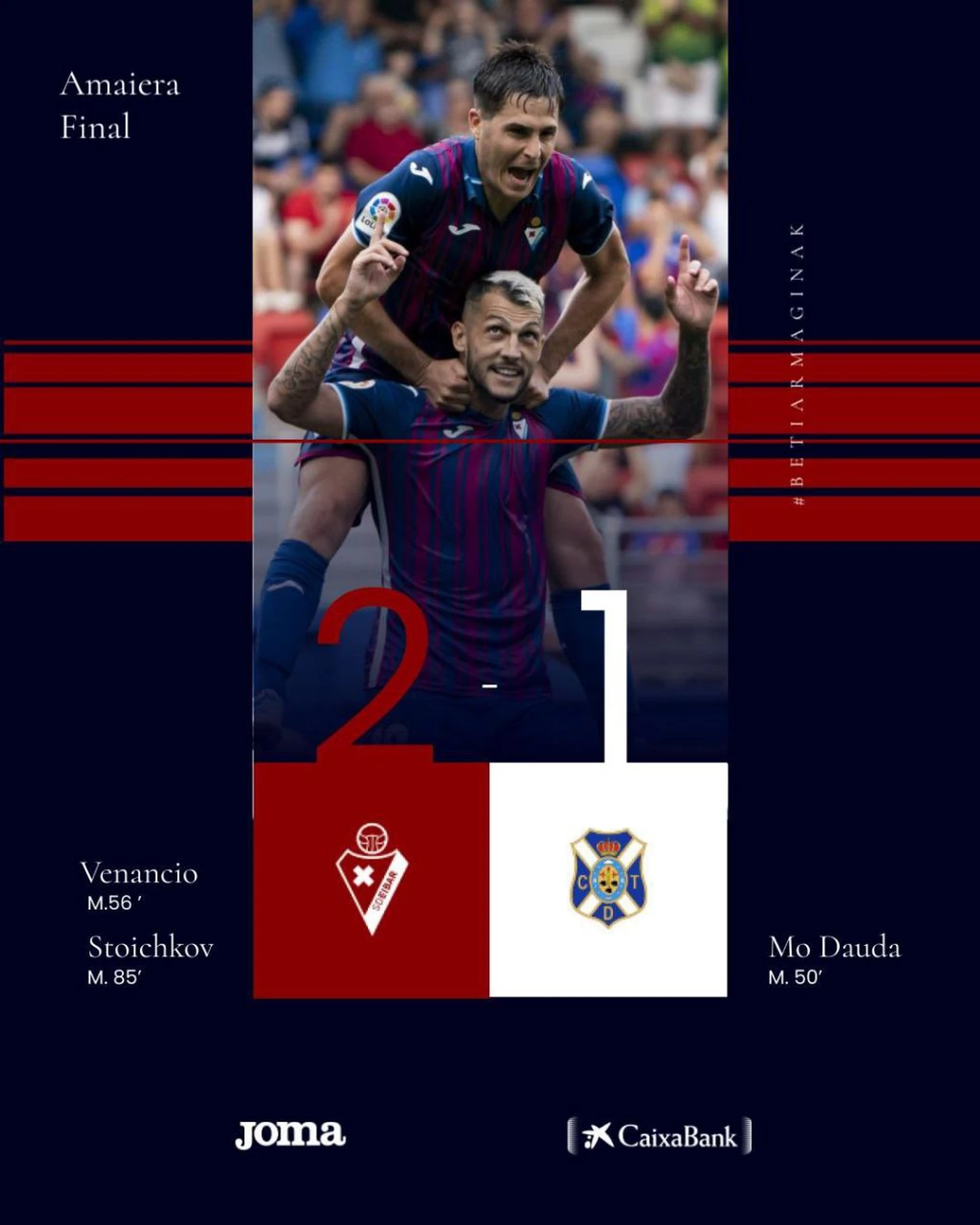 «Тенерифе» открыл счет в начале второго тайма: Дауда, на которого «Эйбар» претендовал летом, отличился в дебютном матче, пальнув в дальнюю девятку с угла штрафной. «Эйбар» отыгрался всего через шесть минут. Венансиу головой замкнул подачу Иманола со штрафного.