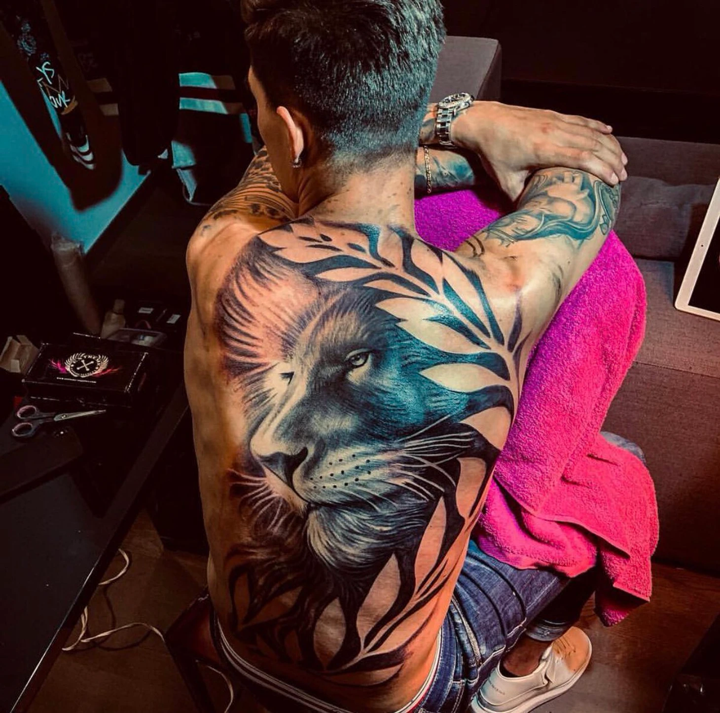 На спине аргентинца изображена голова льва.