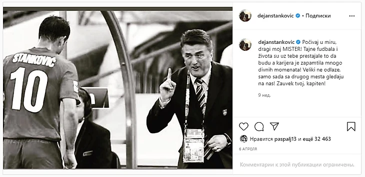 Мы потеряли великого тренера и человека, чьи знания, к сожалению, мало использовали. Типично по-сербски, нетерпеливо… только, чтобы убрать его поскорее. У людей его формата, я говорю не только о футболе, мы должны просить советов гораздо чаще, потому что учиться у лучших не стыдно, это привилегия».