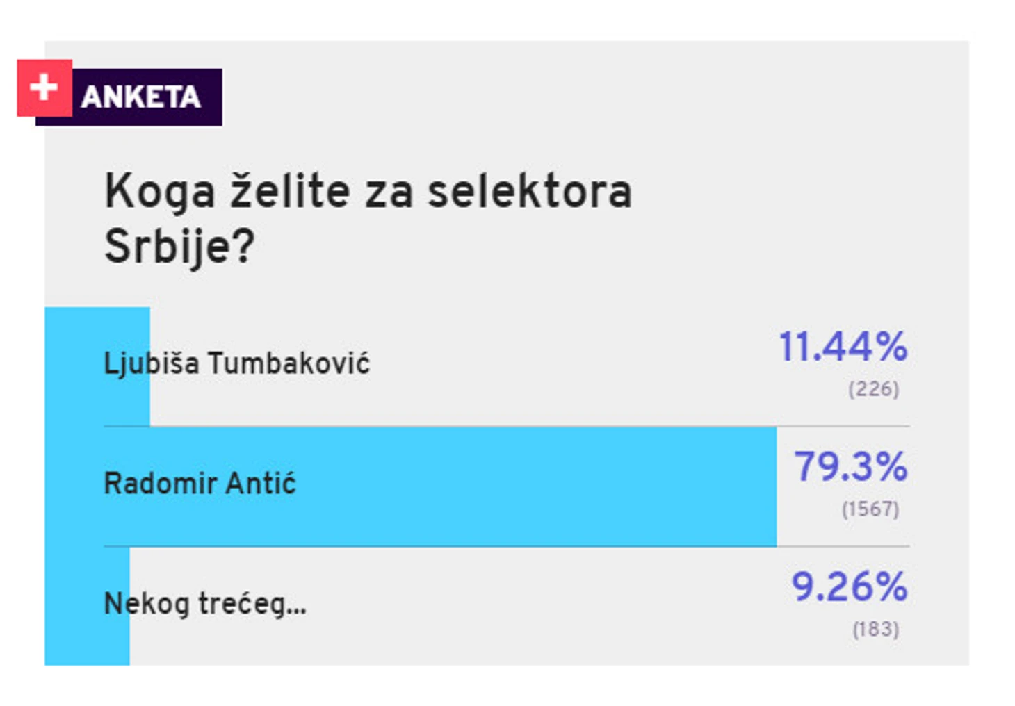 Когда какое-то медиа устраивало голосование на тренера сборной Сербии, всегда с отрывом побеждал Антич. Последний из них в августе 2019: