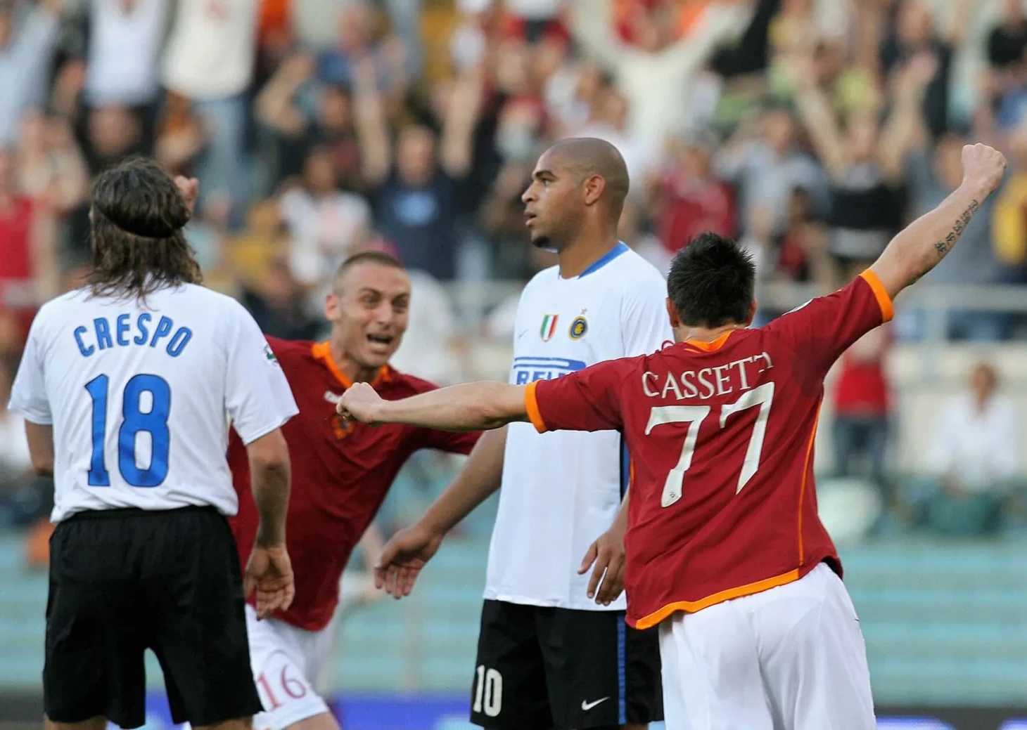 В конце первого получаса игры Адриано получает в центре поля пас от Марко Матерацци, разворачивается, делает два шага и... вколачиваает мяч с нечеловеческой силой в ближнюю «девятку». Если вы не знаете, почему фанаты «Интера» так сожалеют о непродолжительности его карьеры и всерьёз считают, что он мог бы затмить Роналдо, посмотрите этот гол. Спустя всего 5 минут, он же забивает второй мяч, на этот раз головой после подачи со штрафного. К ответной встрече в Милане «Интер» подходил в статусе однозначного фаворита, однако, не отказал своим фанатам в удовольствии увидеть ещё одну победу с красивым голом: на сей раз лавры пожинал Михайлович, которому всегда удавались яркие матчи против «Ромы». Серб забил единственный гол в той встрече, заколотив мяч со штрафного ровно в «девятку». Джанлука Курчи ничего не мог поделать с ударом такой силы. Хоть Курчи и угадал угол, мяч всё равно пробил руки голкипера и залетел в ворота.