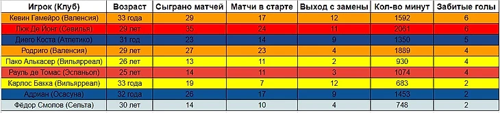 Для того чтобы провести более подробный анализ игры Смолова, сравним его с другими нападающими Ла Лиги: