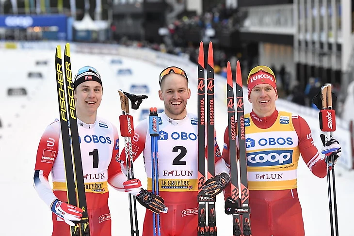 Большунов легко прошел в финал, а там сразу вышел вперед и казалось, что он сможет выиграть и финал, но с этим были не согласны два норвежца: Голберг и Валнес. Саню немного не хватило на финиш, но третье место он отстоял и не пустил на пьедестал спринтера Пеллегрино. Как итог, Большунов оторвался еще на 60 очков от Клэбо в общем зачете.